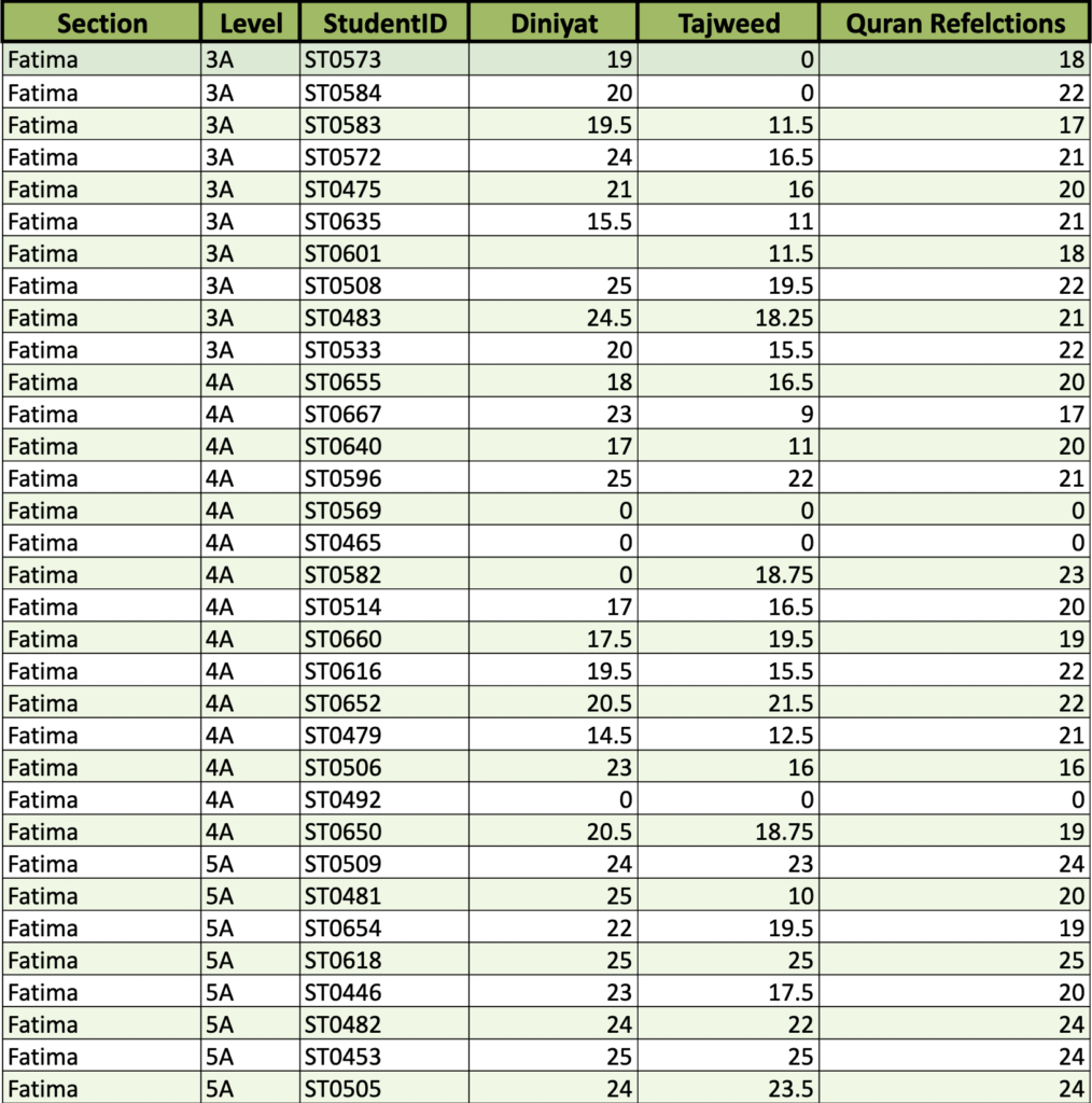 Level Fatima | Grades