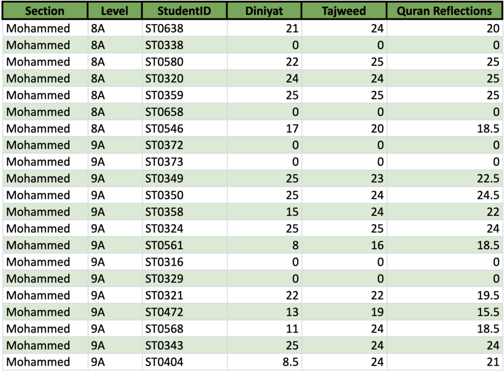 Level Mohammad | Grades