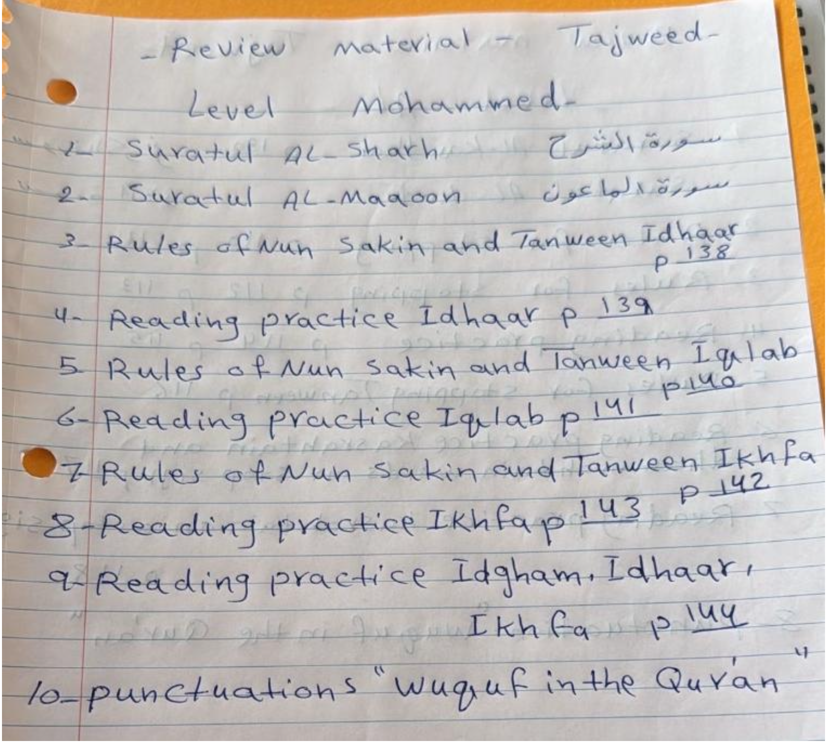 Tajweed – Quiz #2 – Review Material